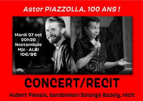“PIAZZOLLA X 2” est une commande impulsée par le festival ARTETANGO en 2020 et qui depuis a conquis les spectateurs : Hubert Plessis, bandonéoniste, grand musicien versé dans un tango contemporain, interprètera des œuvres plus ou moins connues d’Astor Piazzolla (1921-1992) en solo de bandonéon pour profiter au mieux de son instrument de prédilection. La musique alterne, dans un ballet bien huilé, avec les témoignages, anecdotes et récits de Solange Bazely, qui depuis ses innombrables sources, trace un portrait original de ce grand compositeur… Un spectacle vivant, dans une version complice et sensible pour célébrer le 100è anniversaire de la naissance de ce génie du tango !