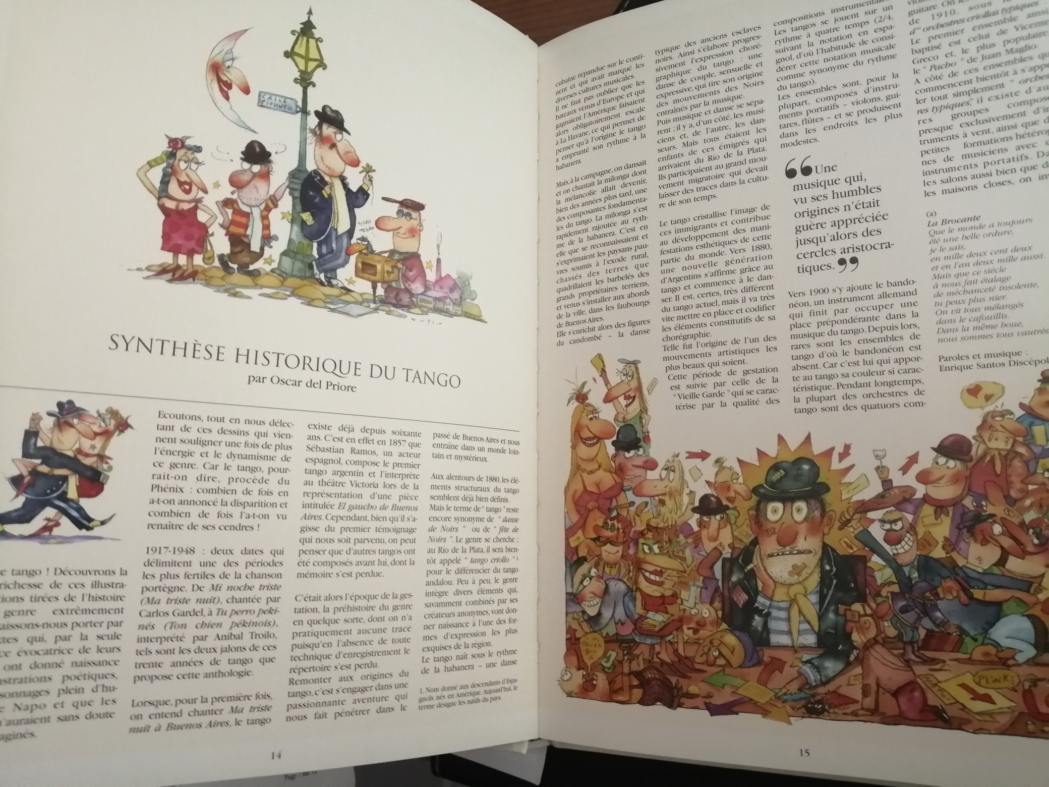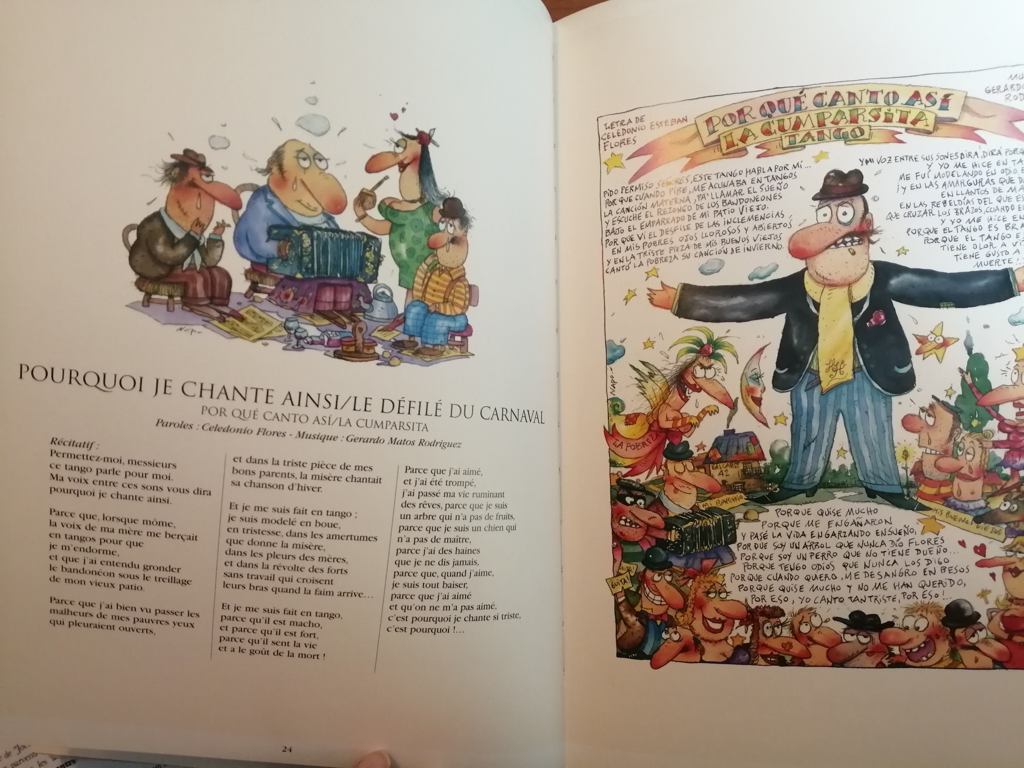 Cette création du dessinateur argentin Napo (1942-2020), collaborateur au Monde, est un ouvrage exquis où cohabitent des personnages, des époques et des paysages dans une fête de couleurs et de style qui s’apparente à la comedia dell’arte. Le Tango, dans la plénitude de son art, donne la réplique à l’art plastique dans un disque qui contient des œuvres exécutées en autant de tableaux pour un Napo imaginatif, sélectionnées par le Maestro Juan José Mosalini, compositeur et directeur d’un des orchestres les plus importants jamais créés en Europe. 21 tangos illustrés.