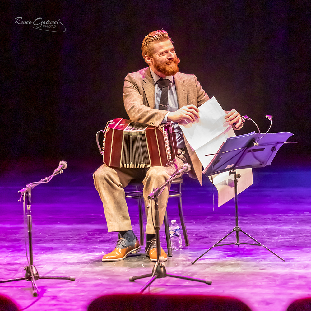Hubert Plessis : Artiste éclectique, d’abord engagé dans une formation d’athlète de haut niveau, il décide de se tourner vers la musique. Ayant débuté à l’accordéon en se produisant en public lors de soirées dansantes et de galas, c’est tout naturellement qu’il rejoint l’univers de la scène au sein du groupe de chanson française Les Vieilles Pies. Pendant treize ans, il parcourt la France, jouant dans de nombreux festivals, enregistrant cinq albums. Il va ainsi s’ouvrir aux musiques Klezmer, Tzigane, Irlandaise, Réunionnaise et au jazz manouche et débute ainsi dans l’art de l’arrangement et de la composition.