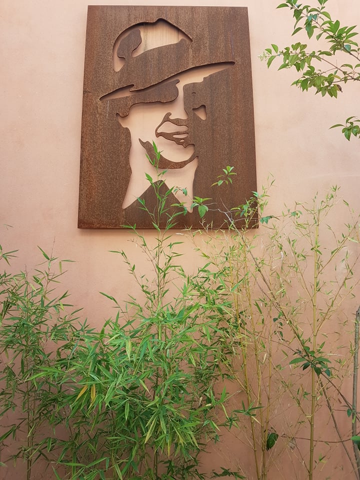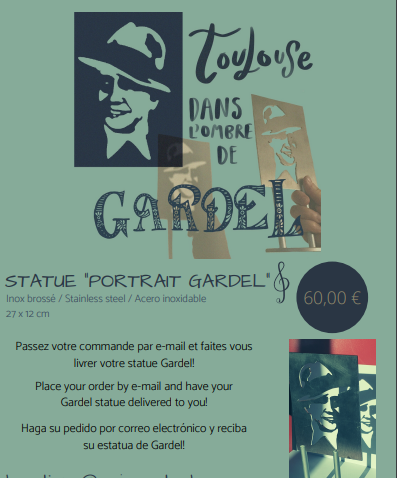 Silhouette du portrait de Carlos Gardel réalisé par Eric Escande, architecte à la demande de Sabine Cabanis pour le 4, rue du Canon d’Arcole à Toulouse, maison qui a accueilli Berthe Gardès à la sortie de la maternité en décembre 1890, avec son fils, qui deviendra le chanteur mondialement connu Carlos Gardel (1890-1935).